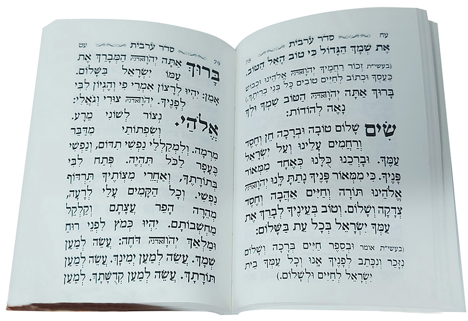 סידור מנחה וערבית לימות חול - נוסח תימן בלדי גודל 11.5+ ס״מ +8.5 ס״מ, כריכה הדבקה חמה כולל שירי מילה וחתנים, ספירת העומר, ברכת לבנה ברכמ״ז, שבע ברכות ותפילת הדרך * ניתן להוסיף הקדשה בהטבעת זהב בחזית להזמנות התקשרו: 035602705 או השאירו פרטים שם מלא * טלפון * דואר אלקטרוני * שלחו הודעה