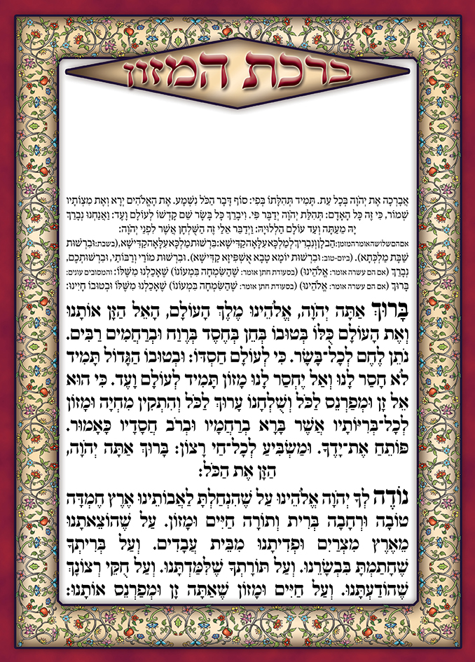 ברכת מזון מתקפל לחצי נוסח עדות המזרח גודל סגור : 23.5 ס״מ + 16 ס״מ + למינציה דו״צ * ניתן להוסיף הקדשה בהטבעת זהב להזמנות התקשרו: 035602705 או השאירו פרטים שם מלא * טלפון * דואר אלקטרוני * שלחו הודעה