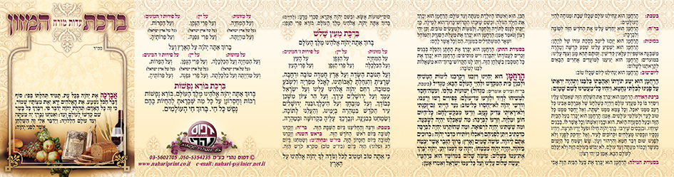 ברכת מזון גודל כיס מתקפל לחמש - נוסח עדות המזרח