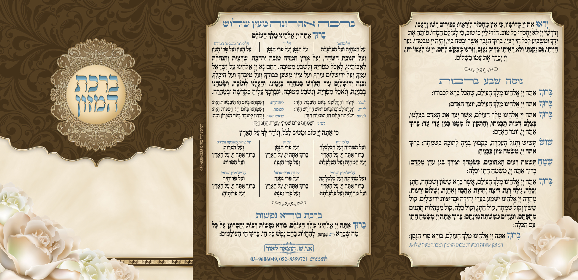 ברכון מתקפל ל-3 גודל 16+10 ס״מ נוסח אשכנז גוון חום * קיים בגוון סגול וגוון כחול * ניתן להוסיף הקדשה בהטבעת זהב להזמנות התקשרו: 035602705 או השאירו פרטים שם מלא * טלפון * דואר אלקטרוני * שלחו הודעה